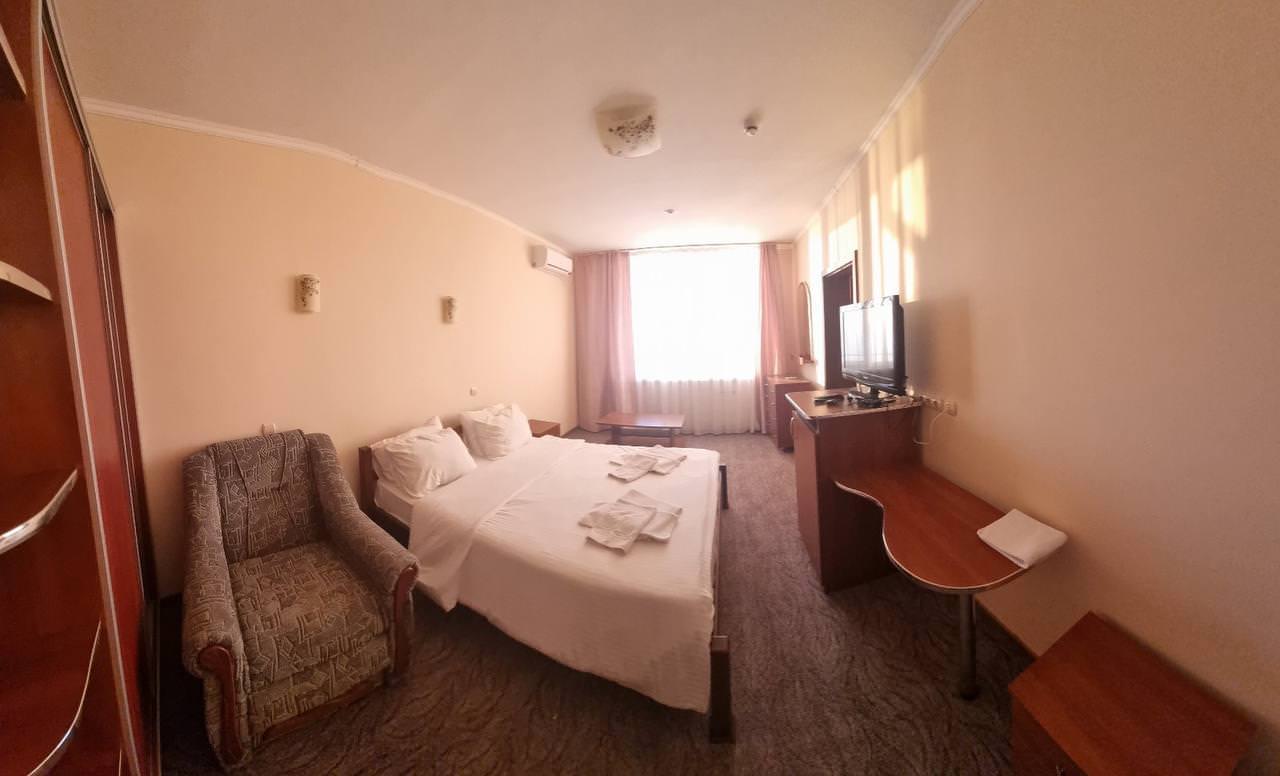 Номер оснащен балконом или террасой. В распоряжении гостей две полноценные комнаты. В номере две двуспальные кровати, диван, шкаф, кондиционер, телевизор, холодильник.